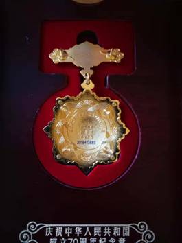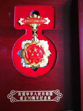 陳同英同志于1949年8月參加革命工作,1985年4月在吉安建總離休,享受副縣級政治生活待遇。參照上級相關(guān)文件精神,陳同英符合“中華人民共和國成立前參加革命工作的、健在的老戰(zhàn)士老同志”條件。為此,吉安建總積極申報,經(jīng)市城投公司審核,通過上級組織考察審定,陳同英同志獲得了中共中央、國務(wù)院、中央軍委頒發(fā)“慶祝中華人民共和國成立70周年紀(jì)念章”(編號2019413880),享受殊榮。